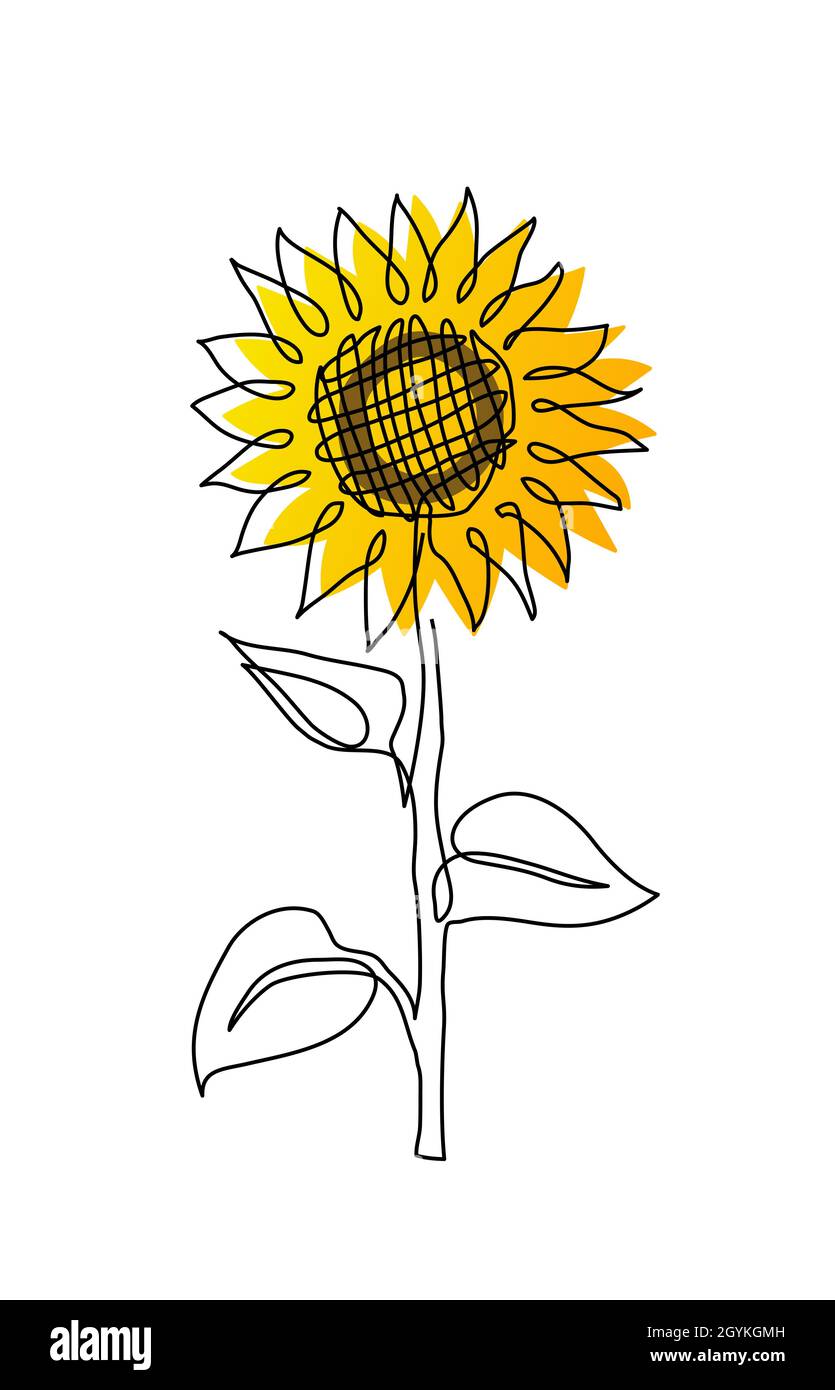 Single Sunflower Simple Vector Line Illustration One Line Art Drawing Of Sunflower Stock Vector Image Art Alamy